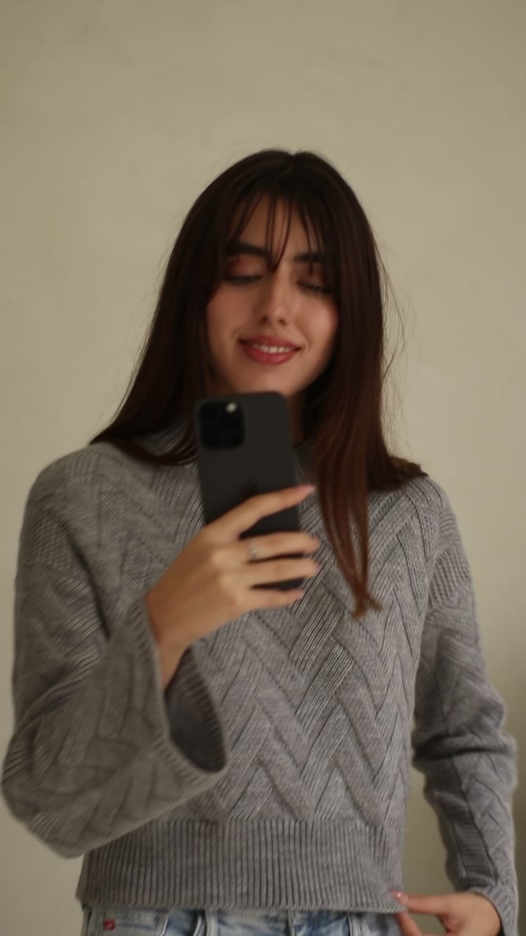 Suave Chompa de lana trenzada con estilo atemporal, cuello redondo y mangas ligeramente acampanadas ideal para completar cualquier outfit.